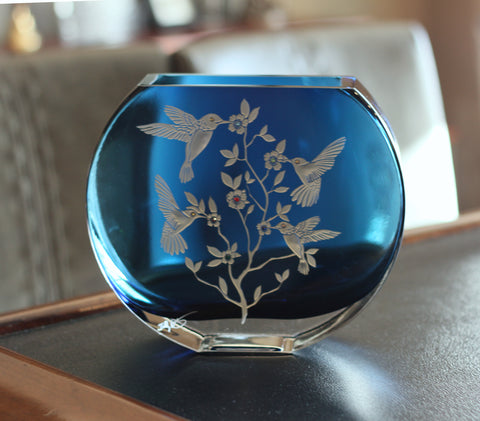 Sweet Surprises Hummingbird Cobalt Blue Round Vase